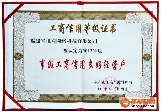 福建省訊網網絡科技有限公司被認定為2013年度市級工商信用良好經營戶
