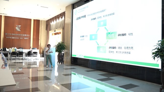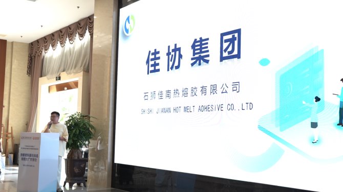 石獅佳南熱熔膠有限公司向與會嘉賓簡要介紹了公司概況后,重點分享了其在“人造革后段加工產品及工藝”等方面的最新研發成果。